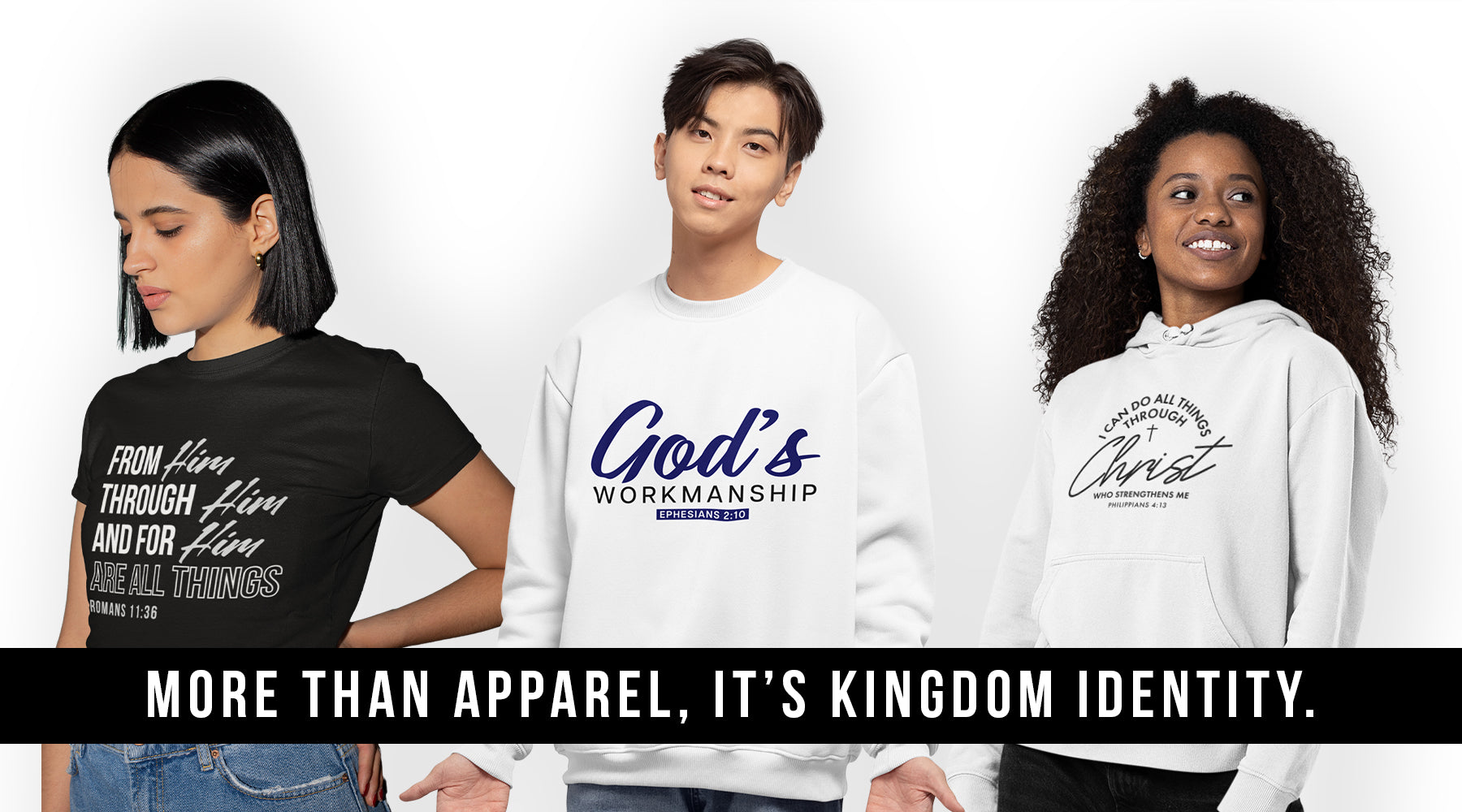 Our brand is built on the understanding that we are a part of God’s greater whole. Every design is a reminder that no matter what part of the journey you're in, God has a divine plan. We emphasize that, as believers, we are all pieces of God’s masterpiece. We exist to help you wear your faith boldly, reminding you and others that you are not just a part of the world—you are a part of something far greater: God’s kingdom.